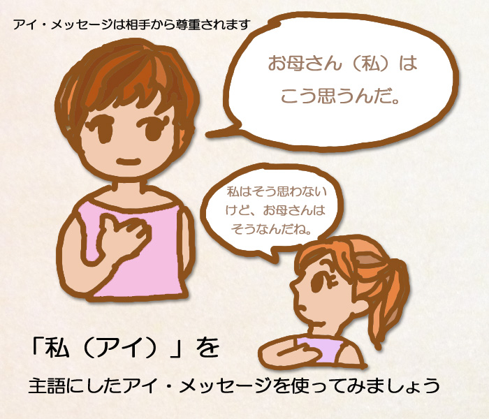 - アイ・メッセージは「私」を主語にしたメッセージ方法