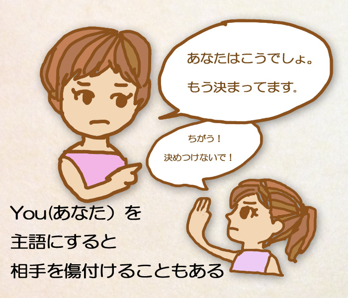 - Youメッセージは相手を主語にしたメッセージで相手を傷つけることがある