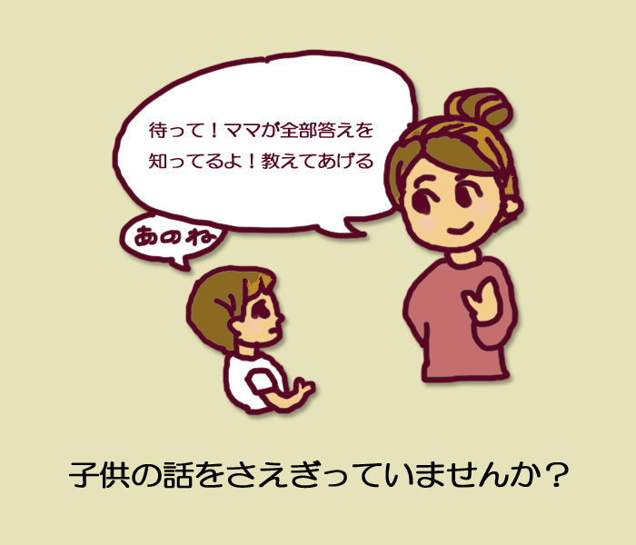 また、話をしている子供は自分の「本当の気持ち」を探りながら話をしています。親が途中で口を挟み、それに子供が対応しなければいけなくなると子供の思考の流れをさえぎってしまうことにもなります。